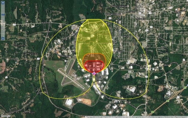 Sekil 7. ALOHA ile örnek atmosfere yayılım analizi.