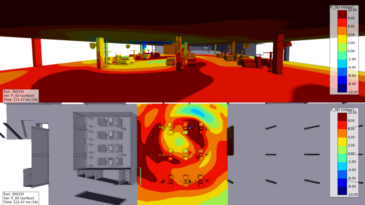 Bunun dışında karmaşık geometrilerin olduğu durumlarda veya deniz üstü petrol platformu gibi dar alanlarda daha detaylı hesaplar yapılması gerektiği de olmaktadır. O zaman computational fluid dynamics (CFD) yöntemlerine başvurmak gerekmektedir. FLACS adlı program bu tip durumlarda detaylı CFD hesapları için yaygın olarak kullanılmaktadır. Şekil 8’de FLACS ile yapılan örnek simülasyon sonuçları verilmiştir.
